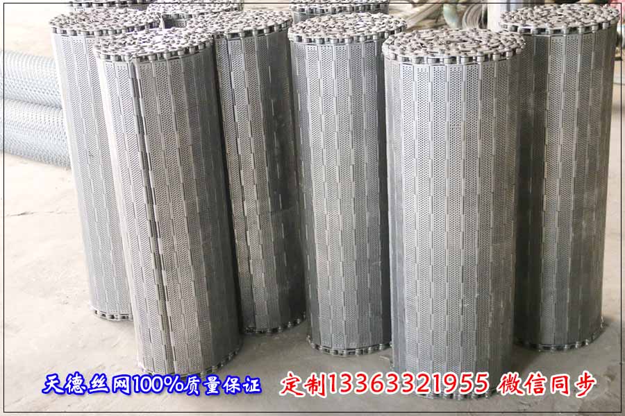 河北天德絲網制品有限公司生產不銹鋼網帶、鏈板、金屬輸送帶、耐磨損輸送網帶、擋板輸送帶:13363321955 http://www.sc-zdhl.com/