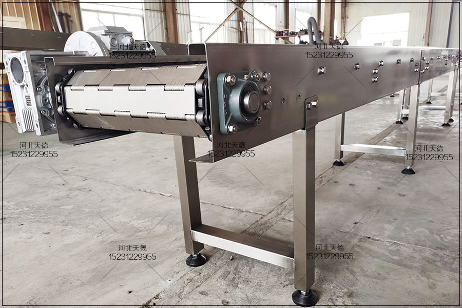 6、鏈板輸送機(jī)一般都可以直接用水沖洗或直接浸泡在水中,輸送機(jī)的每個(gè)部位清潔方便,能實(shí)現(xiàn)食品、飲料行業(yè)對(duì)衛(wèi)生環(huán)境的要求;