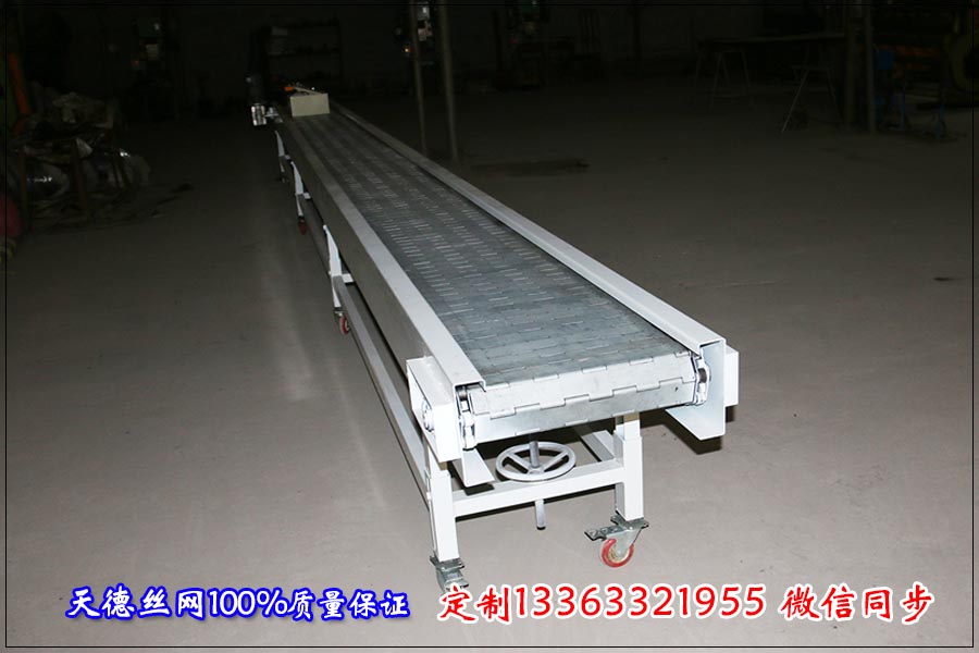 鏈板輸送機可以進行傾斜、直線、水平和垂直提升輸送,鏈板輸送機用于重物件的傳送。也能夠組成空間傳送線路,傳送線路是固定的鏈板輸送機輸送能力大,輸送距離長,能 夠在流水線輸送設備中同時完成幾項工作,使用用途相當廣泛。 我們要考慮輸送物料的體積面積大小、特性、密度、有沒有腐蝕性物品,鏈板輸送機輸送物料影響鏈板輸送機不銹鋼網帶的使用壽命。一般不銹鋼網帶能承受的拉力是有限的,在物料比較大 比較重的情況下,不銹鋼輸送帶不能接受設備運行時產生的拉力,很容易將不銹鋼輸送帶拉斷。 現在在輸送機械行業的市場上有兩種鏈板輸送機,一種是串桿和金屬板焊而成 的,一張式帶彎板金屬板組成的。每一種鏈板輸送機都有著很重要的用途。