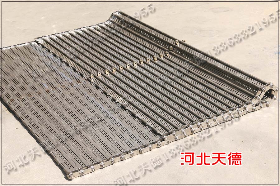 現(xiàn)代化的烘干機一般為多層式回轉(zhuǎn)結(jié)構(gòu),在保證足夠的停留時間前提下,多層式結(jié)構(gòu)可有效節(jié)省空間并節(jié)約成本。 通常用于多層式烘干機上的不銹鋼網(wǎng)帶,其寬度一般不低于1.0m,河北天德沖孔鏈板廠家,每層的長度小于40米。 烘干機輸送網(wǎng)帶因為其特殊的使用環(huán)境,沒有水分,如果不是食品行業(yè),可采用碳鋼材質(zhì)來節(jié)省一部分成本,但是如果是對材質(zhì)要求特別高的食品機械上使用時,要用304不銹鋼材質(zhì)。