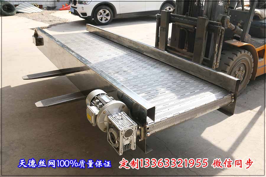 河北天德絲網制品有限公司生產銷售鏈板輸送機、不銹鋼輸送機、網帶輸送機、板式提升機、網帶轉彎機、食品爬坡機等等多種規格的金屬輸送帶。