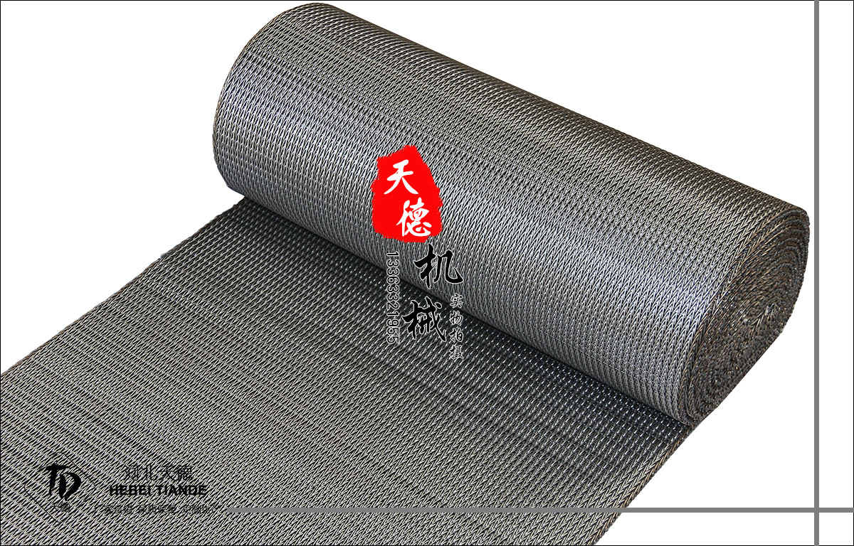 人字形網帶由左右交替的網條通過四根直串條聯結而成,準確的編織技術使網帶既具有密度、高網孔、細運行靈活的特點,它對材料和編織技術要求高。