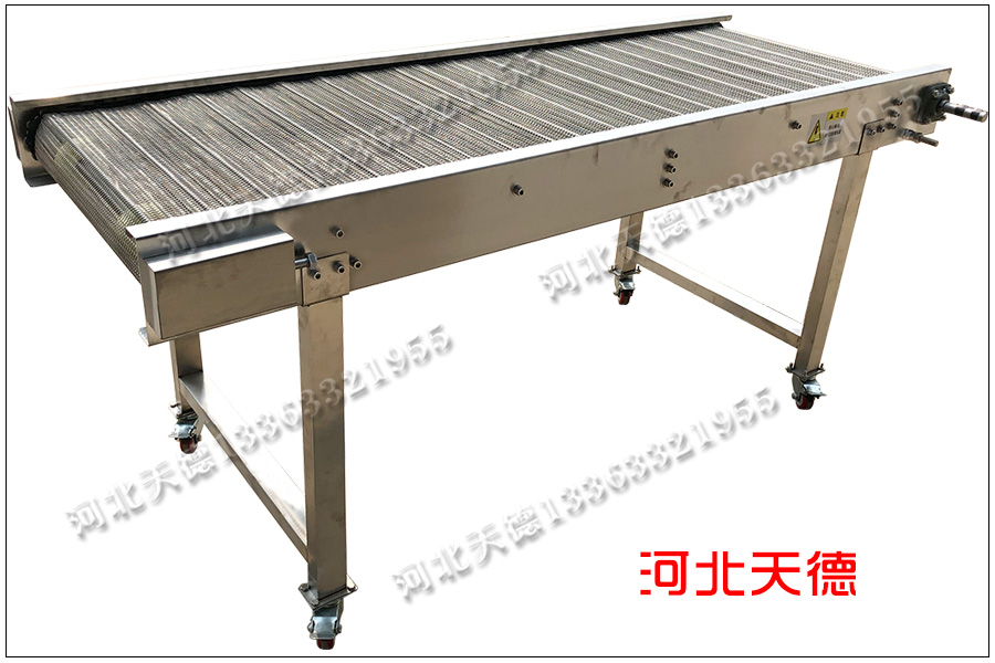 小型網(wǎng)帶輸送機(jī)外觀漂亮,移動(dòng)方便,成本低,采用不銹鋼304材質(zhì)鏈條鋼絲網(wǎng)輸送帶加工,鏈條采用大滾珠雙節(jié)距鏈條輸送,此種鏈條輸送輕便,磨損少,拉力輕,承載能力大。現(xiàn)在好多大型企業(yè)都采用大滾珠鏈條來(lái)輸送。